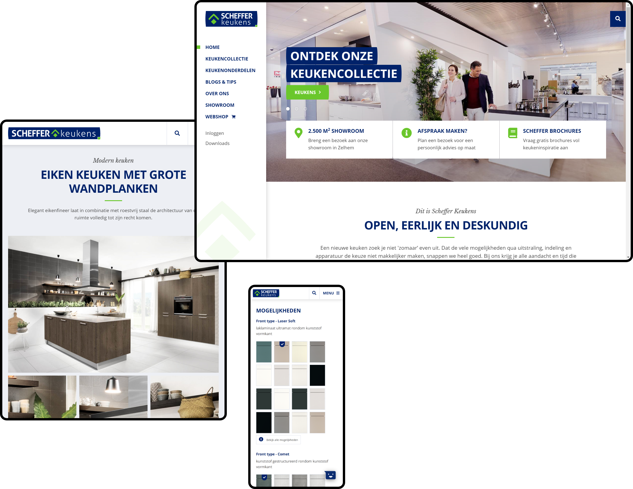 De website van Scheffer Keukens was verouderd. Voor een nieuwe website had Scheffer een helder toekomstbeeld: een website en webshop in één, met volop keukeninspiratie, waar de mogelijkheden volledig gepresenteerd kunnen worden en keukenapparatuur direct online besteld kan worden. Dit betekende een uitgebreid traject en dus werd er in de tussentijd een tijdelijke website gelanceerd om de verouderde website alvast te vervangen en hiermee betere data te verzamelen die als input diende voor de nieuwe website.