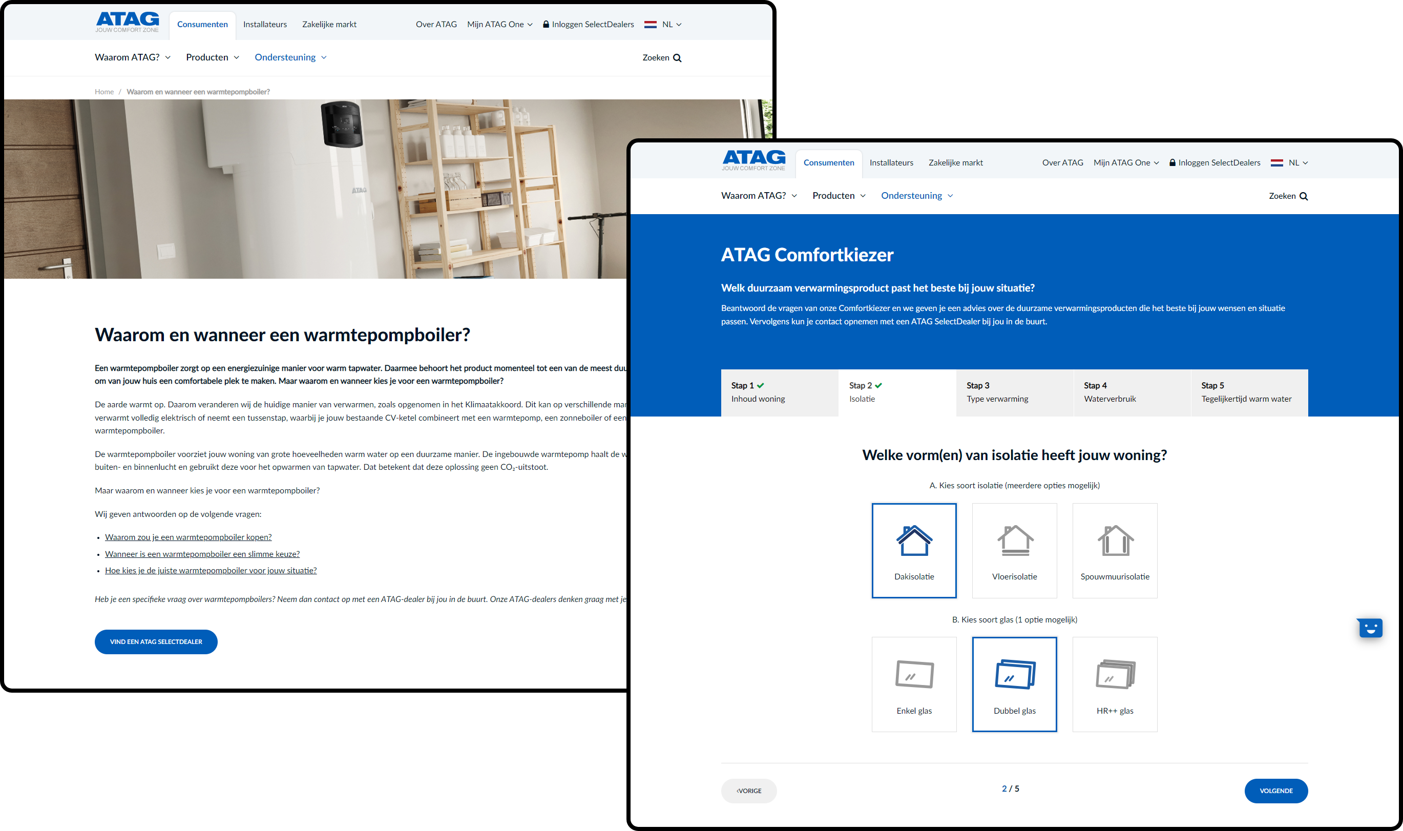 Sinds 2018 staat de huidige website van ATAG Verwarming live, die in meerdere talen aansluiting vindt op 3 doelgroepen: consumenten, installateurs en de zakelijke markt. De content is volledig afgestemd op de betreffende doelgroep en websitegebruikers maken volop gebruik van de Comfortkiezer, een gebruiksvriendelijke keuzehulp die op basis van een aantal simpele vragen een duurzaam advies op maat biedt.