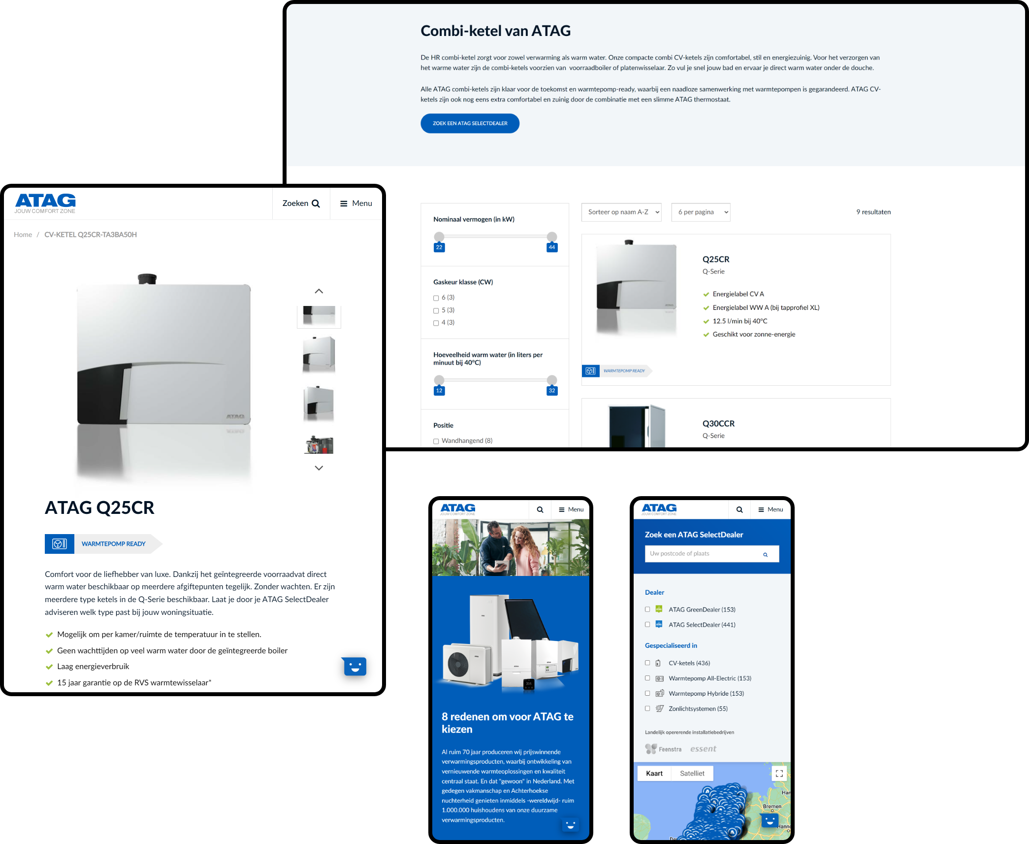 ATAG Verwarming had een sterk verouderde website en was op zoek naar een nieuwe responsive website in meerdere talen die aansluit bij alle doelgroepen (consument, installateurs en zakelijk) die zij bedienen, waarbij de (product)informatie is afgestemd op de betreffende doelgroep. Naast een openbaar deel moest er binnen de website ook een afgeschermd gedeelte beschikbaar worden voor de 'Select Dealers'.